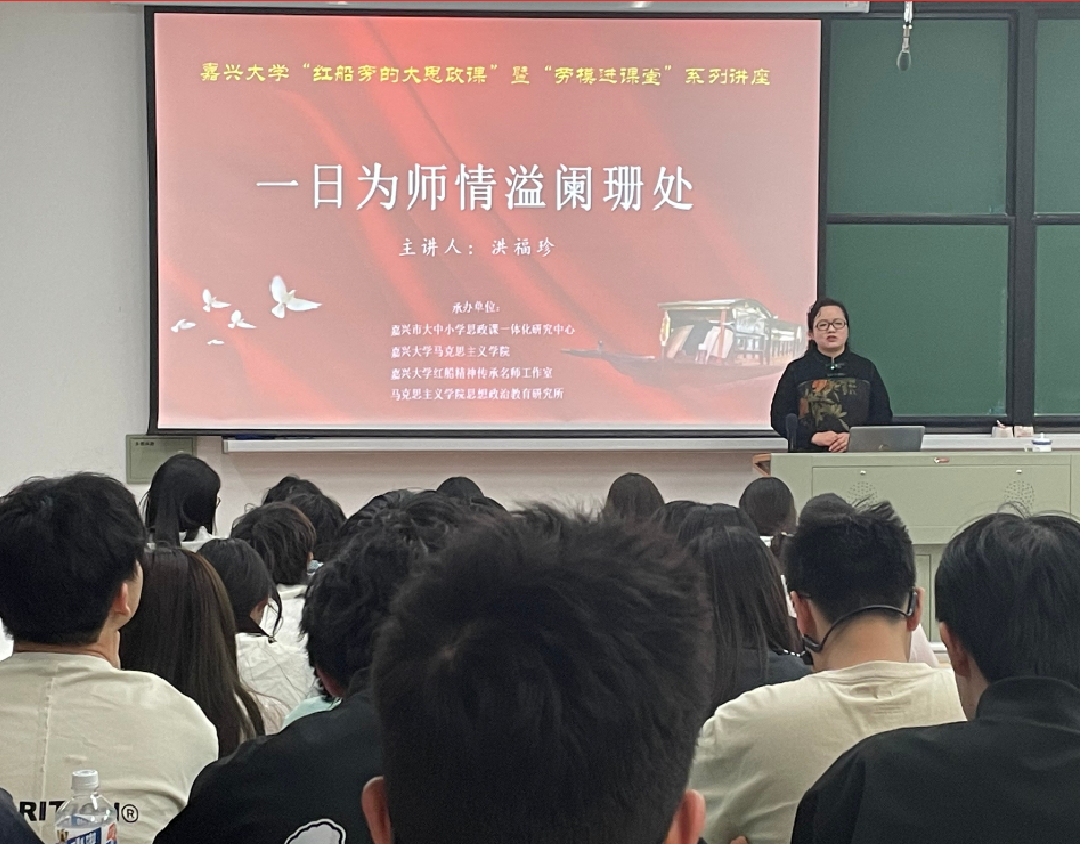 扎实推动“‘红船精神+’大思政课”建设的重要举措之一,自2021年以来通过邀请各行业的“全国劳动模范”和“先进人物”进课堂,与“榜样人物”面对面交流,实现把“大先生”请进来、用好社会大资源、大平台,让思政课“活起来”,真正把思政课讲到学生心坎里。