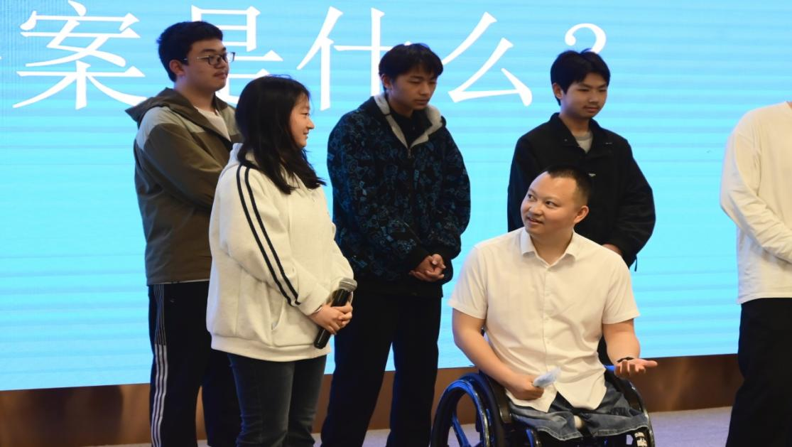 思想政治教育研究所特别邀请第二十八届全球热爱生命奖章获得者、“无腿蛙王”代国宏老师开展题为《从“为什么是我”到“我能成为谁”——生命意义的自我重构》的生命教育讲座。代老师不仅为学生们带来了一场感人至深的生命感悟,更为在场的思政课教师呈现了一堂生动的教学示范。尤其在互动环节中,代老师巧妙创设情境,邀请现场同学亲身参与模拟残障状态的体验活动,让同学们在沉浸式体验中产生情感共鸣,进而形成价值认同。