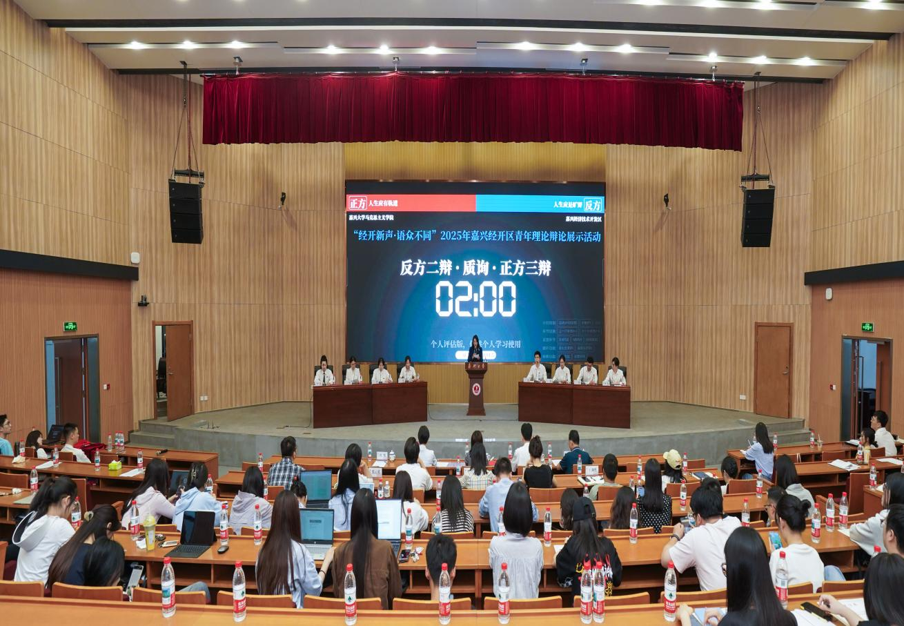 活动现场,正方“嘉大马院队”主张“人生应有轨道”,反方“经开新声队”则坚持“人生应是旷野”。双方辩手紧扣红船精神内核,将青年成长、社会价值等现实议题融入辩论之中,引经据典、旁征博引,展现出了扎实的理论功底和敏捷的思维能力。
