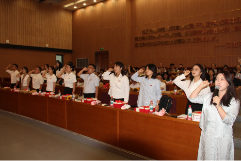为新教师赠送了入职礼,并进行了宣誓仪式。