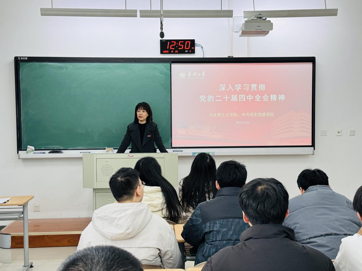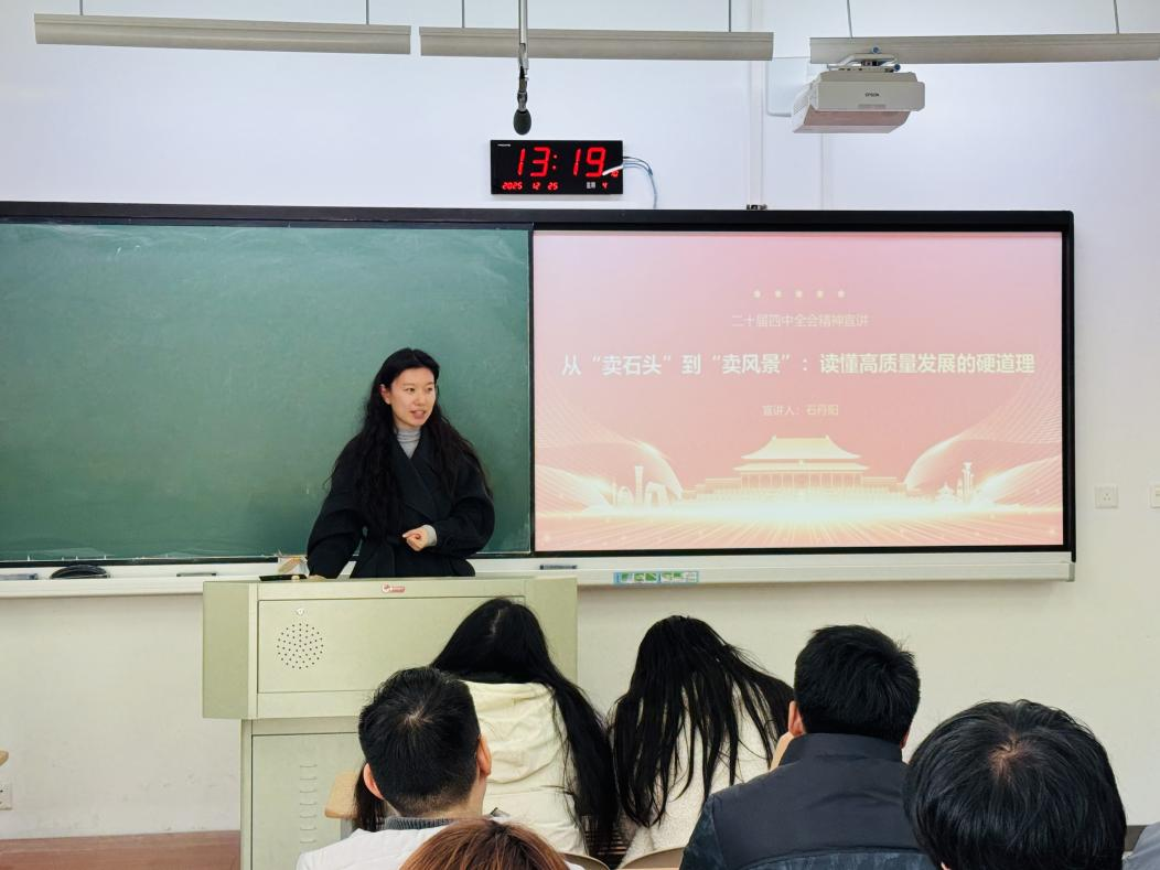 青年教师做专题宣讲。彭冰冰围绕党的二十届四中全会召开的重大意义、全会审议通过的重要文件的核心内容、新时代新征程推进国家治理体系和治理能力现代化的战略部署等方面,进行了全面系统、深入浅出的解读。