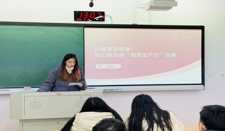 冯莘娅同学以AI辅助设计为例,展现新质生产力对文化创意的赋能作用。她认为,技术并非替代人类,而是拓展创造力边界,青年应积极学习运用新技术,在创作与实践中培育创新思维。