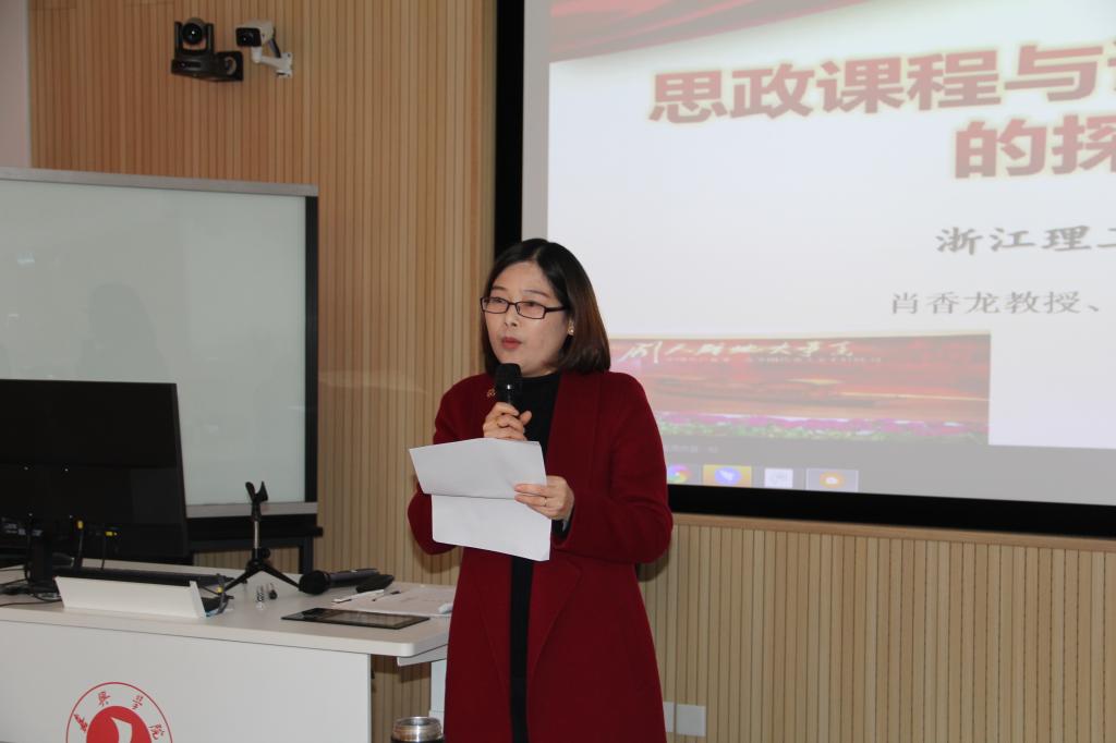教学沙龙由浙江理工大学双赢彩票 副院长、教授,硕士生导师肖香龙担任主讲嘉宾,医双赢彩票 副教授,医学心理学博士王凤华和双赢彩票 思想道德与法治教研室原主任、博士蒋少容作为分享嘉宾,双赢彩票 的副院长许惠芬主持教学沙龙。肖香龙以“思政课程与课程思政协同育人”为题,重点从课程思政和思政课程的概念,课程思政实践中的问题解析以及课程思政的优化设计三个维度进行分享;王凤华以“ 课程思政教学设计”为题,以丰富生动的案例分享探讨了家国情怀,品格塑造,专业伦理和科学精神四个类型的教学设计;蒋少容则从课程思政和思政课程协同构建生命教育的可能性、育人机制以及实现路径三方面分享了课程思政和思政课程协同育人的研究心得。红船精神研究中心副教授、博士杨晓伟就医学课程思政设计中如何贯穿和体现中医治病理念与王凤华进行了交流与探讨。许惠芬副院长对三位嘉宾进行了一一点评。