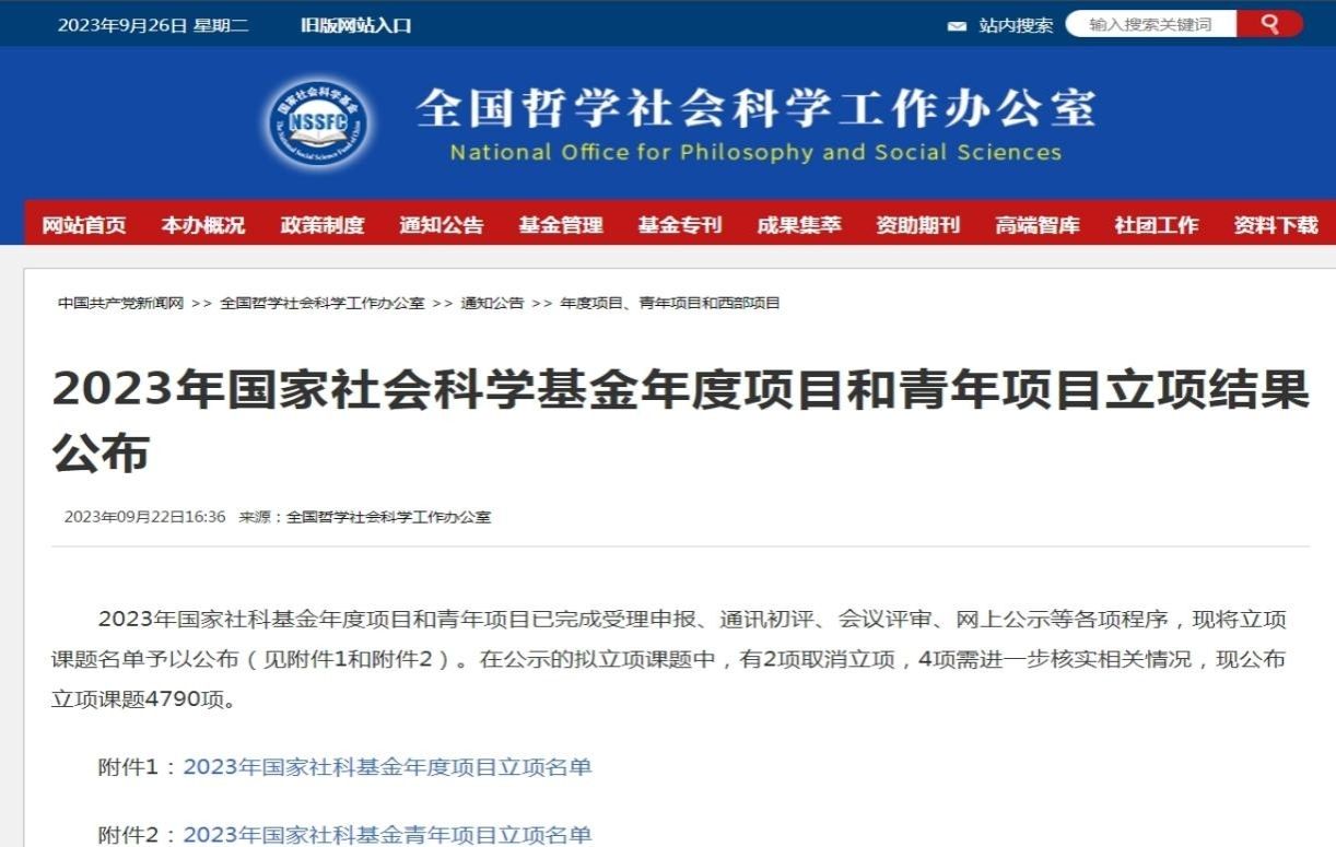 近日,根据全国哲学社会科学工作办公室《2023年国家社会科学基金年度项目和青年项目立项结果公布》的通知,双赢彩票