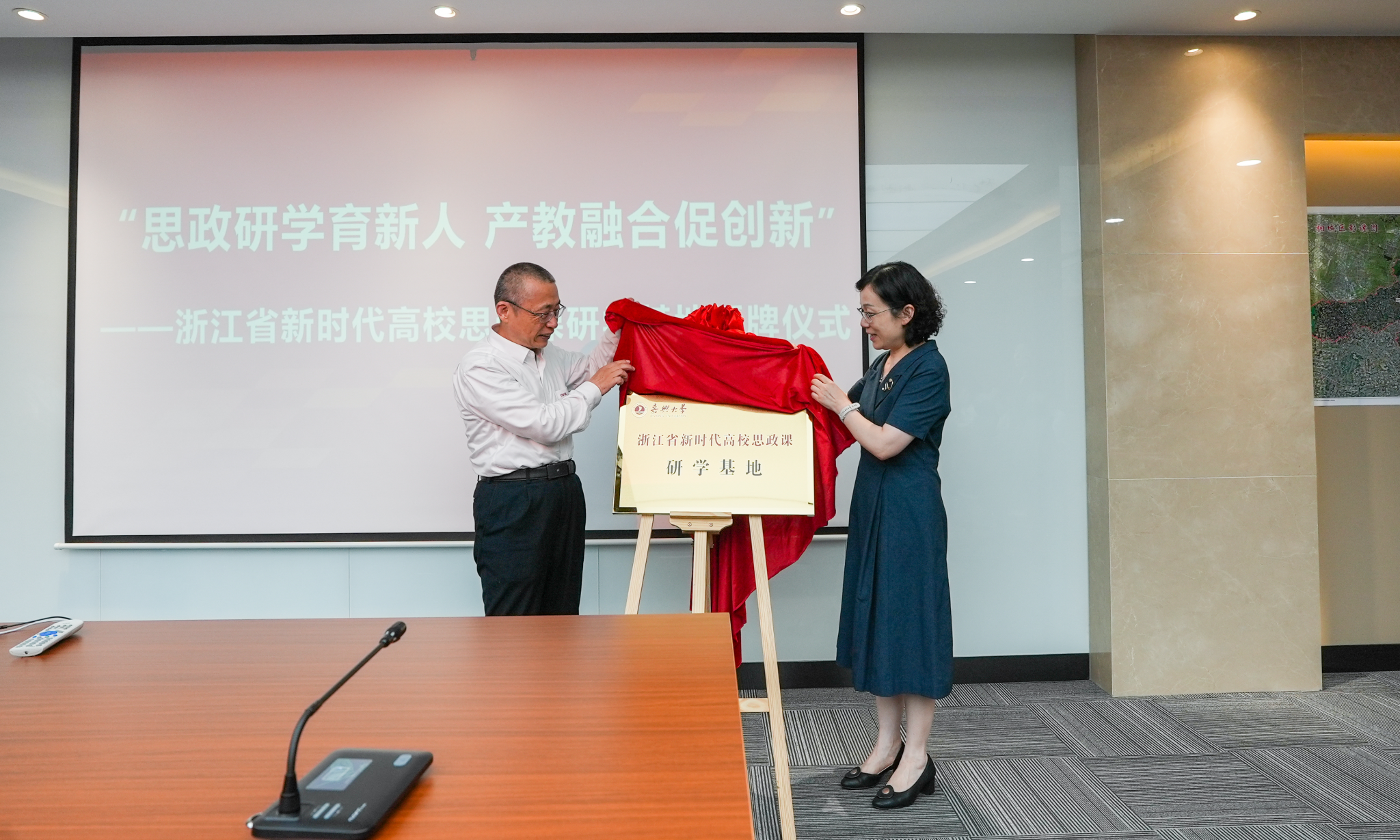 6月27日下午,双赢彩票 “浙江省新时代高校思政课研学基地”授牌仪式在量子科技长三角产业创新中心举行。中国电科首席科学家、量子科技长三角产业创新中心主任陆军院士与双赢彩票 党委委员、副校长(主持日常工作)张琦共同为基地揭牌。