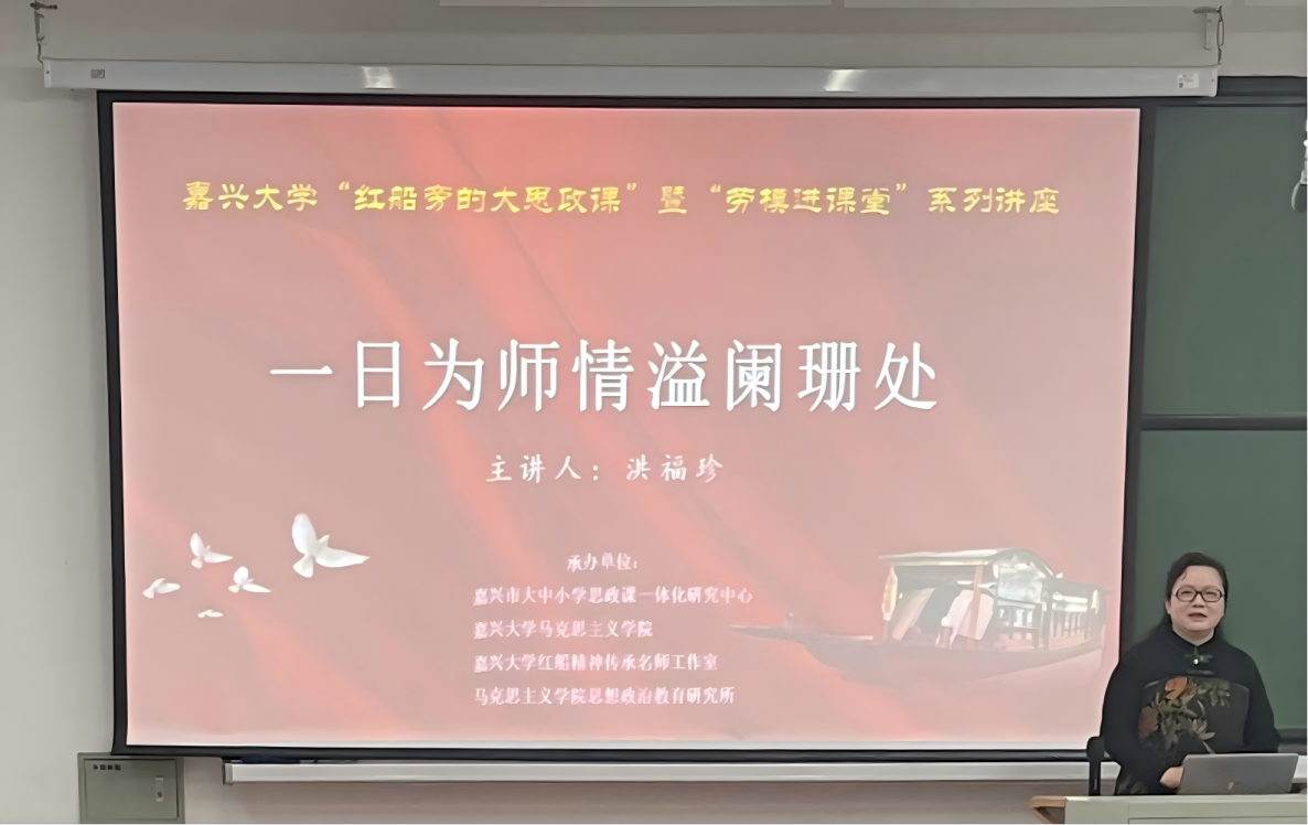 书记兼初中部校长洪福珍进校开展“劳模进课堂”讲座,旨在推动党建与教学深度融合。