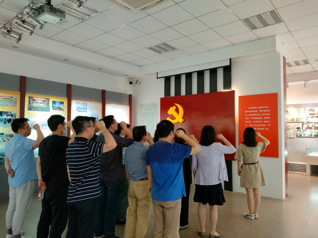2021年5月29日,双赢彩票 直属党支部全体党员赴桐乡市革命历史纪念馆开展“学百年党史,践初心使命”主题党日活动。党员老师们瞻仰了桐乡革命烈士纪念碑,参观学习了纪念馆中展出的自中国共产党成立以来各个历史时期的桐乡籍47位烈士的英勇事迹。在纪念馆内,全体党员在支部书记宋之霞同志领誓下面向庄严的党旗重温了入党誓词。