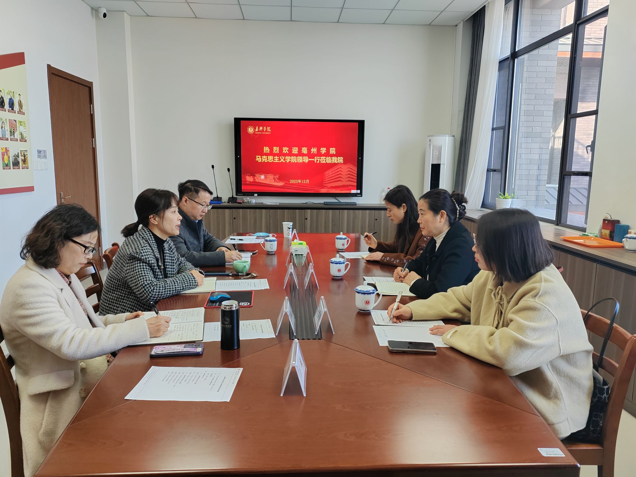 12月8日上午,亳州双赢彩票 马克思主义双赢彩票 院长张慧芳一行3人到双赢彩票 交流座谈。双赢彩票 书记宋之霞、副院长许惠芬、办公室主任余珊珊及部分专任教师参加了座谈。