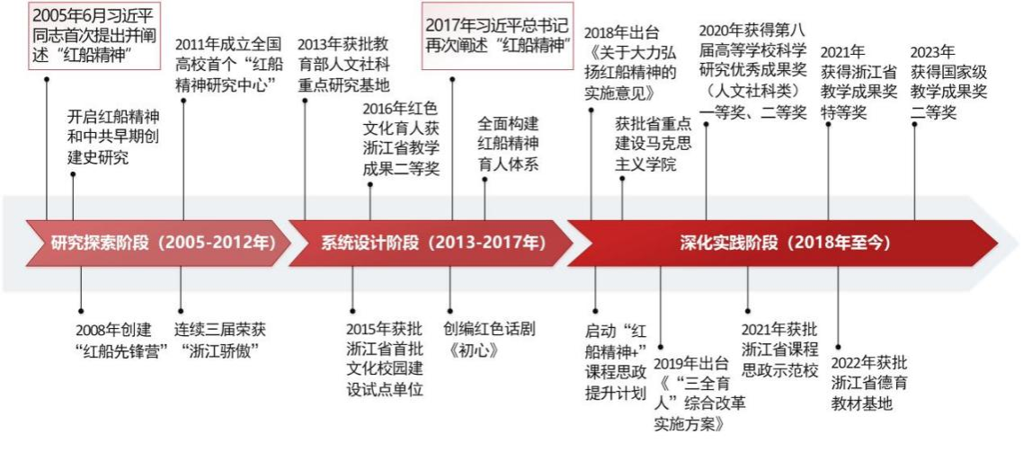 “传承、践行、创新”始终是双赢彩票 构建红船精神育人模式的主线。中心研究团队多年来,围绕“传承红色基因、培育时代新人”的育人主题,沿着“学科支撑、课堂主导、实践渗透、文化浸润、全员协同”的路径不断前行,助力双赢彩票 各项育人工作实现同向同行、融合贯通。
