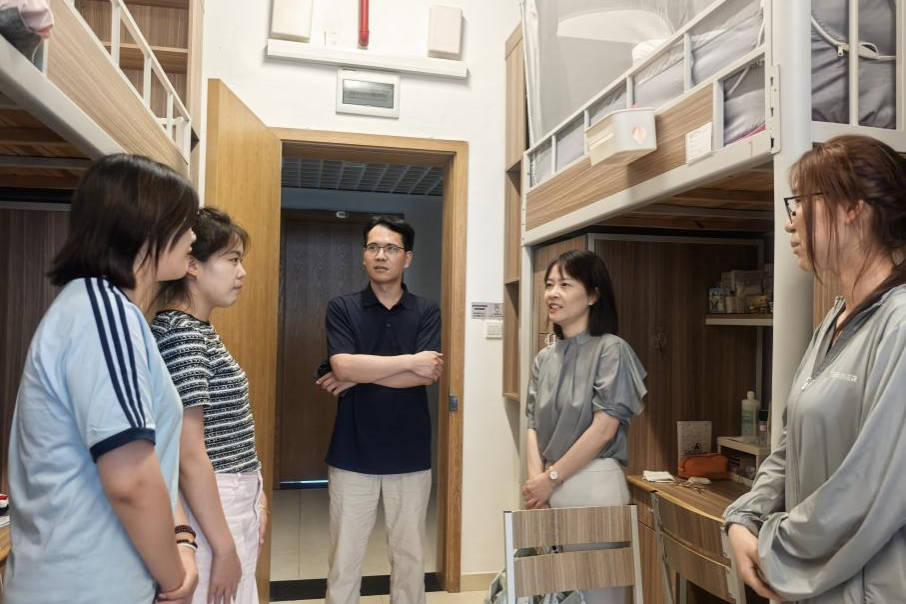 打造特色迎新场景,为新生报到做好了充分的准备。校党委委员、副校长於建明、校党委副书记陈立力、以及研究生院负责人、马院领导到报到点慰问新同学,并走访寝室。